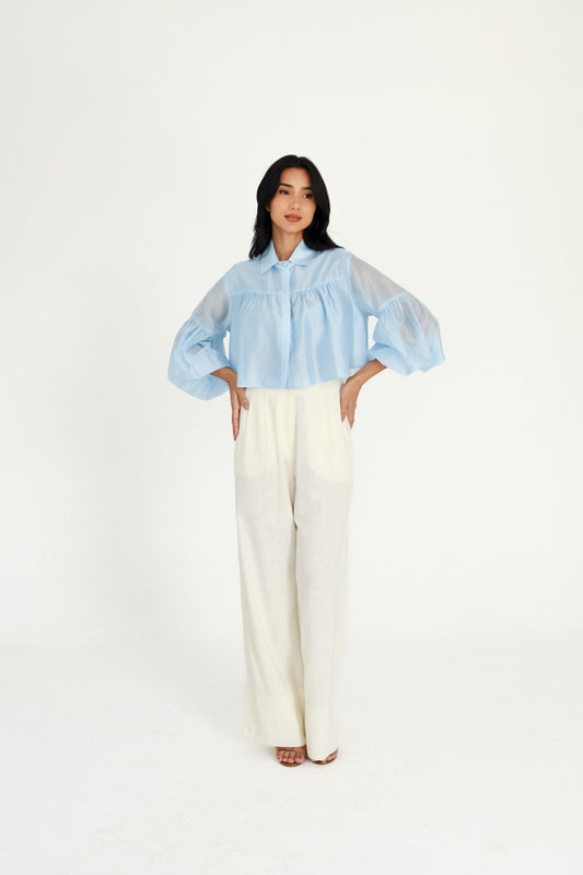 Blusa Cropped Bufante Azul Celeste