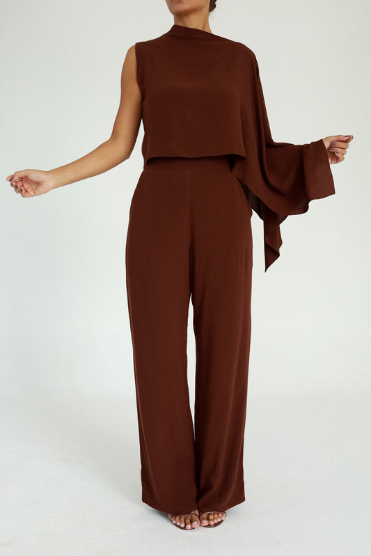Blusa Manga Assimétrica Marrom