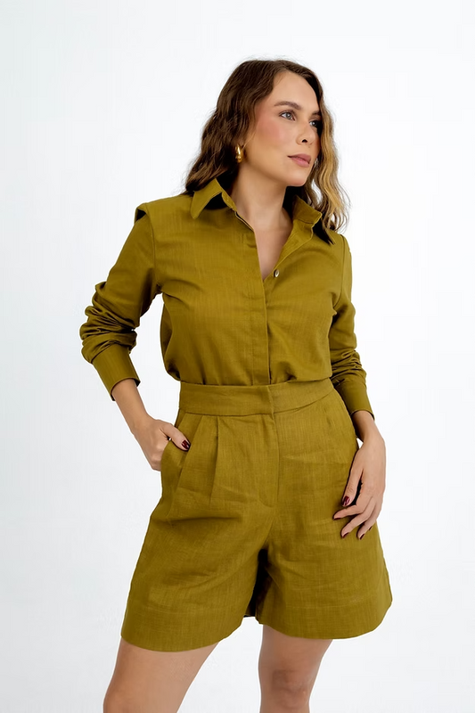 Bermuda Alfaiataria Banzeiro Linho Rami Verde