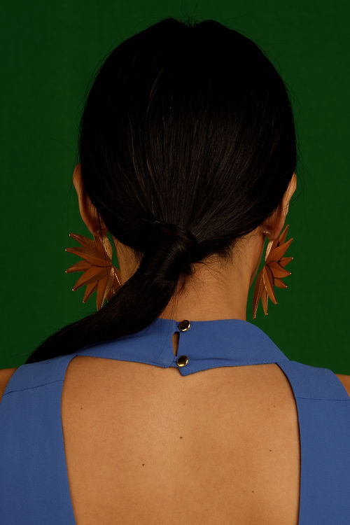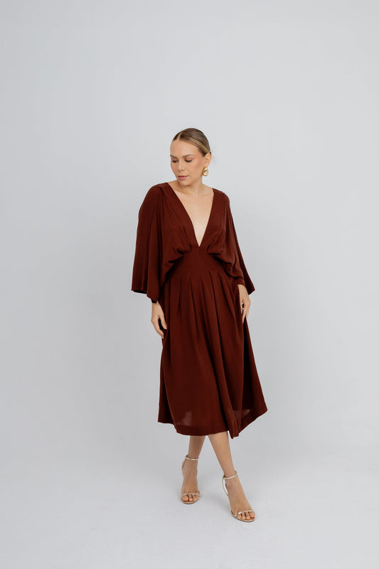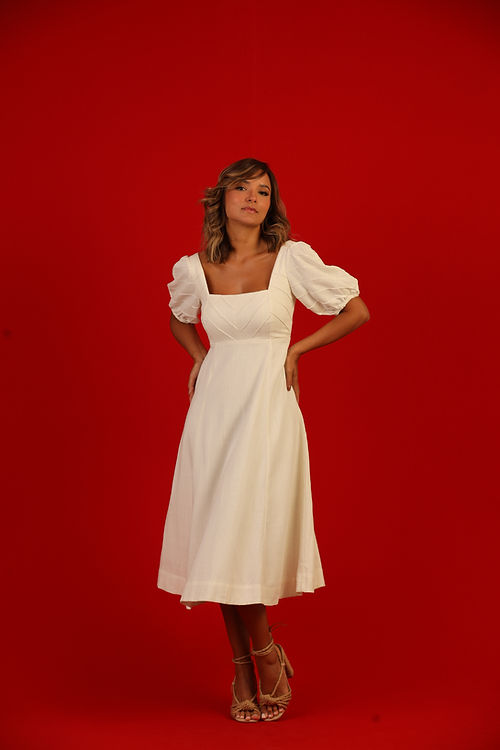 EsgotadoVestido Folha Manga Bufante Tapioca